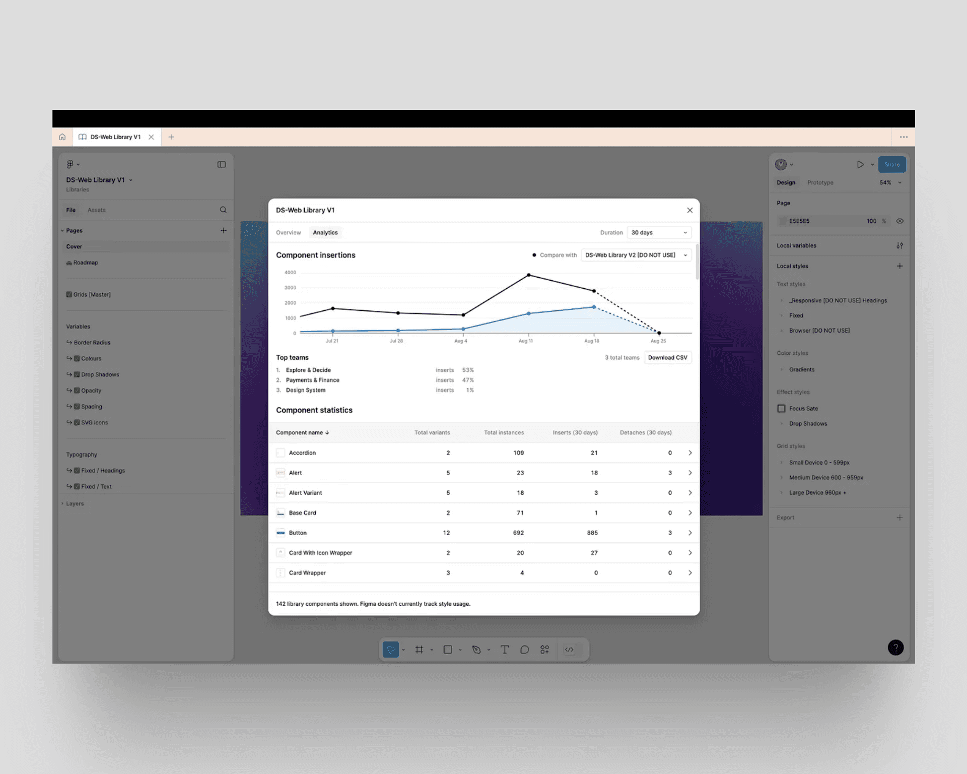 Usage of the new design system was monitored to evaluate adoption across the design team.
